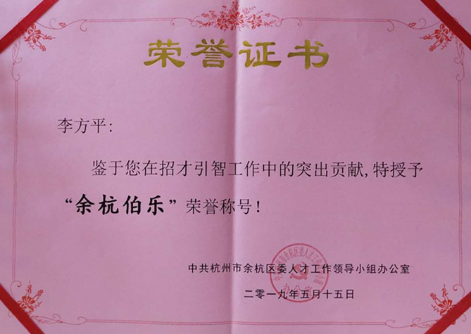 諾爾康董事長李方平榮獲“余杭伯樂”榮譽稱號